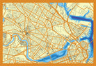 Cartographic and bathymetric (water depth) data are compiled to create a beautiful layered map full of texture and a high level of detail, beautifully stained and dyed to highlight the unique characteristics of any city. The example city maps pictured are Boston (24x24") and Chicago (24x36").