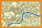 This detailed 24x36" city map coffee table features the heart of the city of London, punctuated by the River Thames.