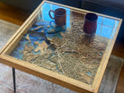 Cartographic and bathymetric (water depth) data are compiled to create a beautiful layered map full of texture and a high level of detail, beautifully stained and dyed to highlight the unique characteristics of any city. The example city maps pictured are Boston (24x24") and Chicago (24x36").